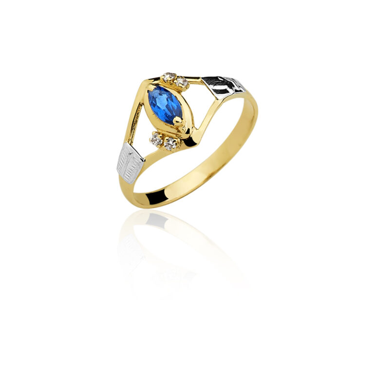 Emblemas do curso em ouro branco maciço e o restante do anel em ouro amarelo maciço.