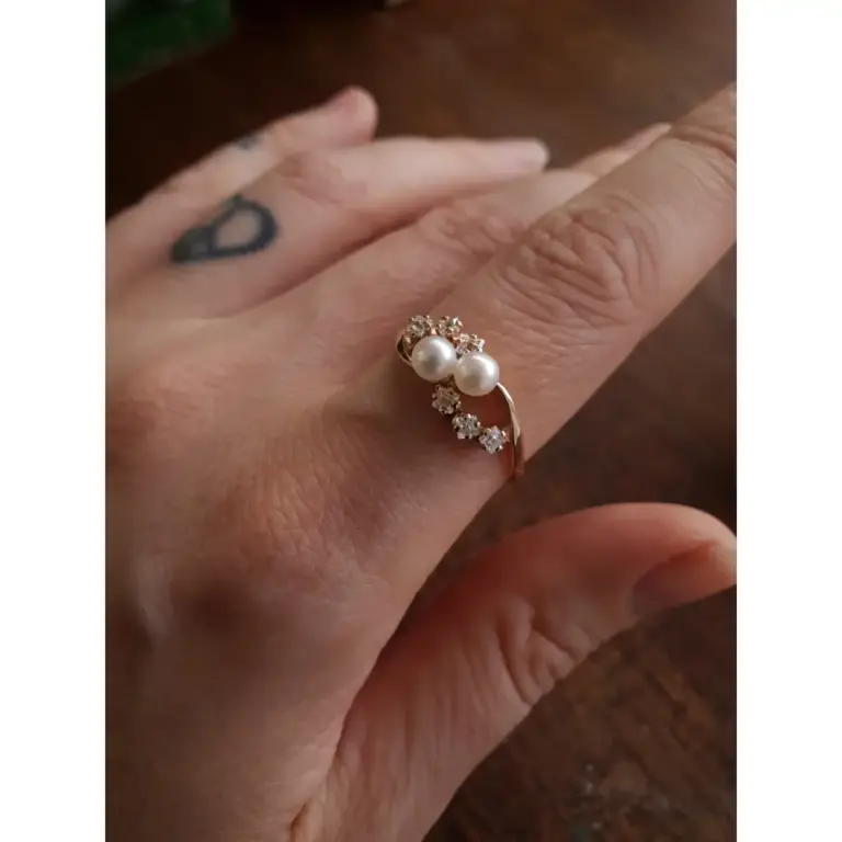 Anel de pérola Ouro maciço com pedras AC05