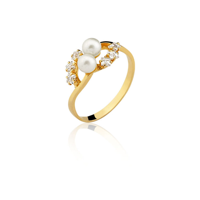 Anel de pérola Ouro maciço com pedras AC04