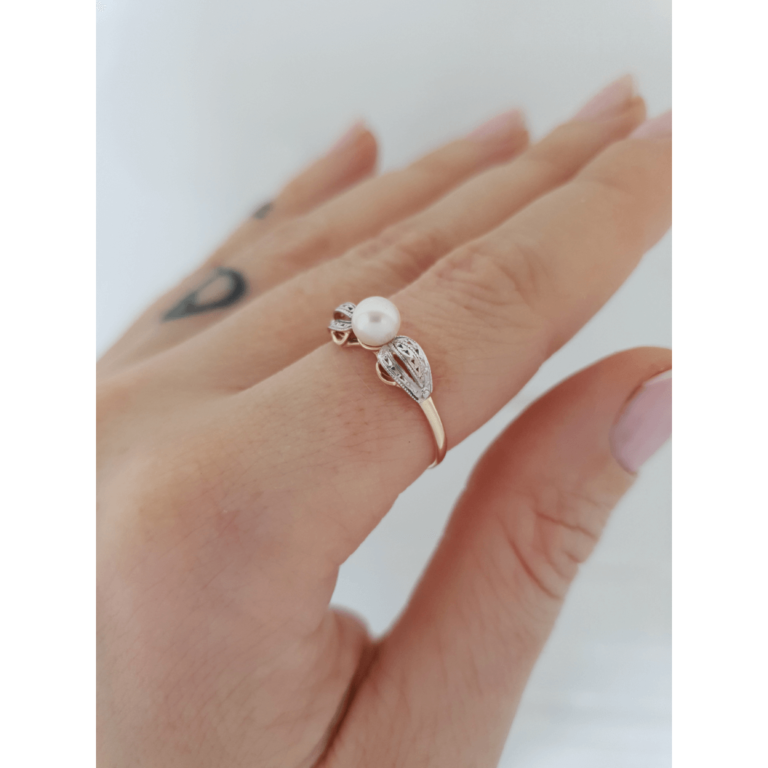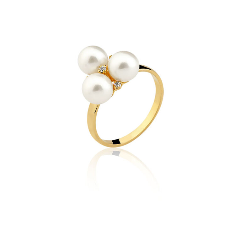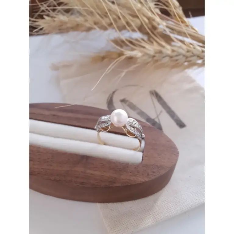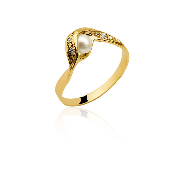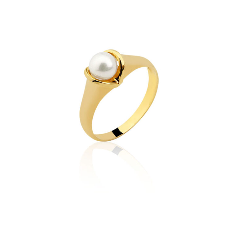 Anel Ouro maciço infantil de pérola com pedras AC12